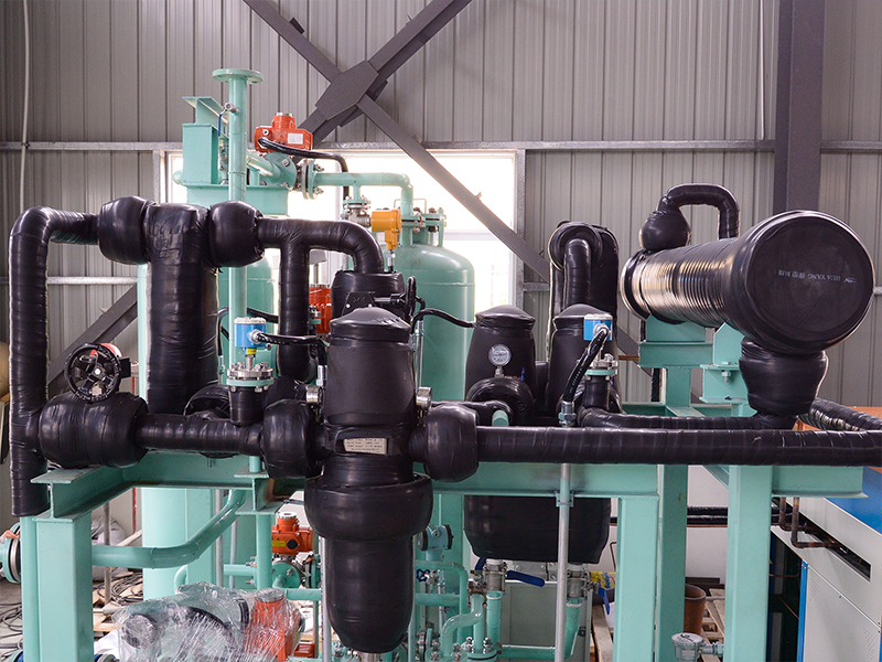 儲(chǔ)油罐回收裝置的冷凝法,是利用烴類物質(zhì)在不同溫度下的蒸汽壓差異,通過(guò)適宜溫度范圍逐步降溫的形式,使釋放的大部分油氣蒸汽壓達(dá)到過(guò)飽和狀態(tài),從而使過(guò)飽和油氣冷凝析出形成液態(tài)汽油的回收油氣方法。缺點(diǎn)是冷卻溫度越低,汽油蒸發(fā)的回收率越高,但在冷卻工藝中要消耗很大的能源。